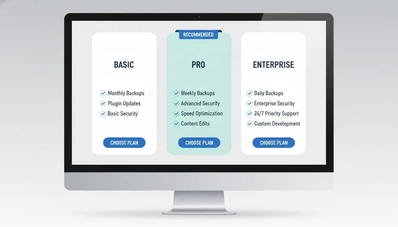 Website maintenance plan pricing comparison layout